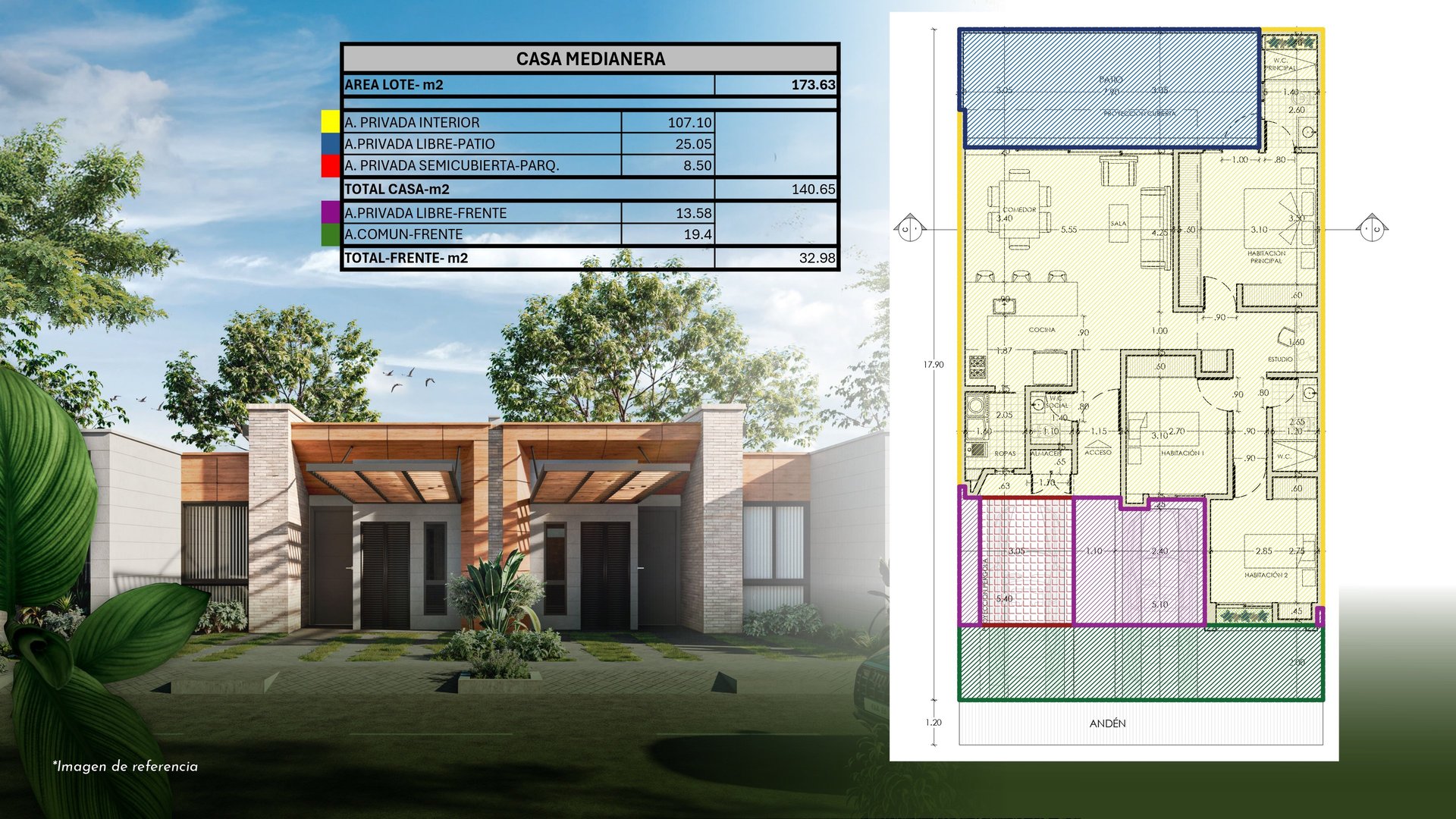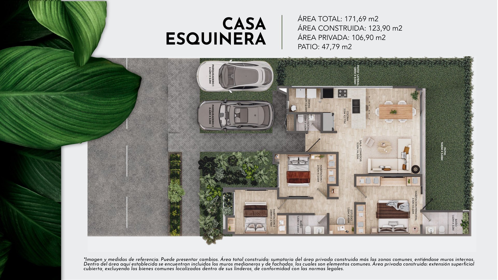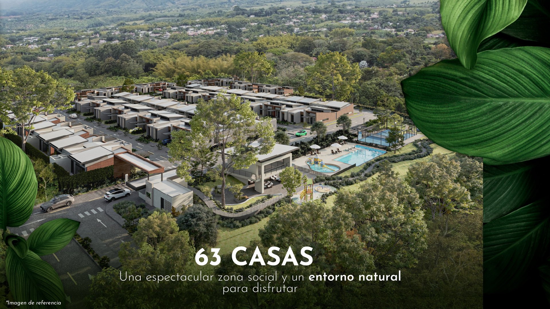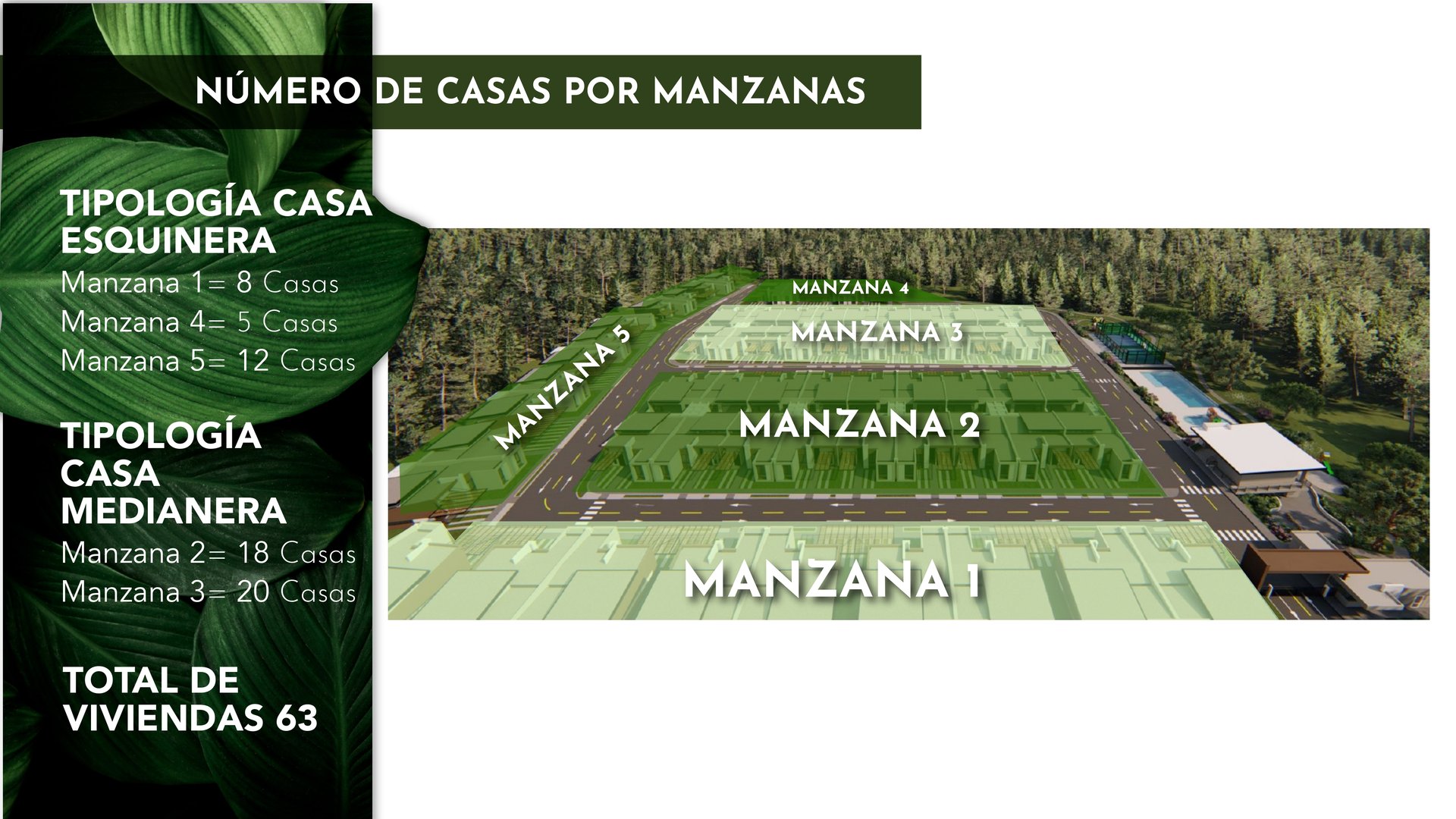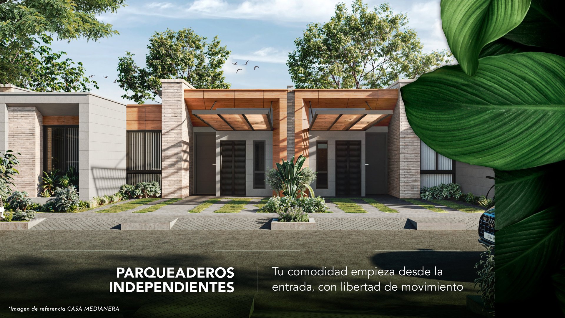 El proyecto está conformado por 63 casas campestres, distribuidas en tipologías de casas esquineras y medianeras, todas con parqueaderos independientes, amplias zonas verdes y patios privados multipropósito que podrás personalizar según tu estilo: un jacuzzi, un firepit, un jardín zen o un espacio para compartir en familia.