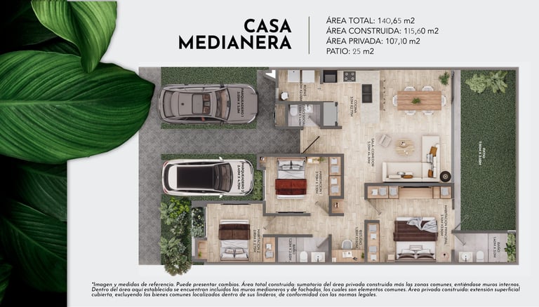 Las viviendas cuentan con diseño de doble altura en sala-comedor, acabados modernos, y una distribución práctica que privilegia la conexión entre interior y exterior, integrando la naturaleza como parte esencial del hogar.